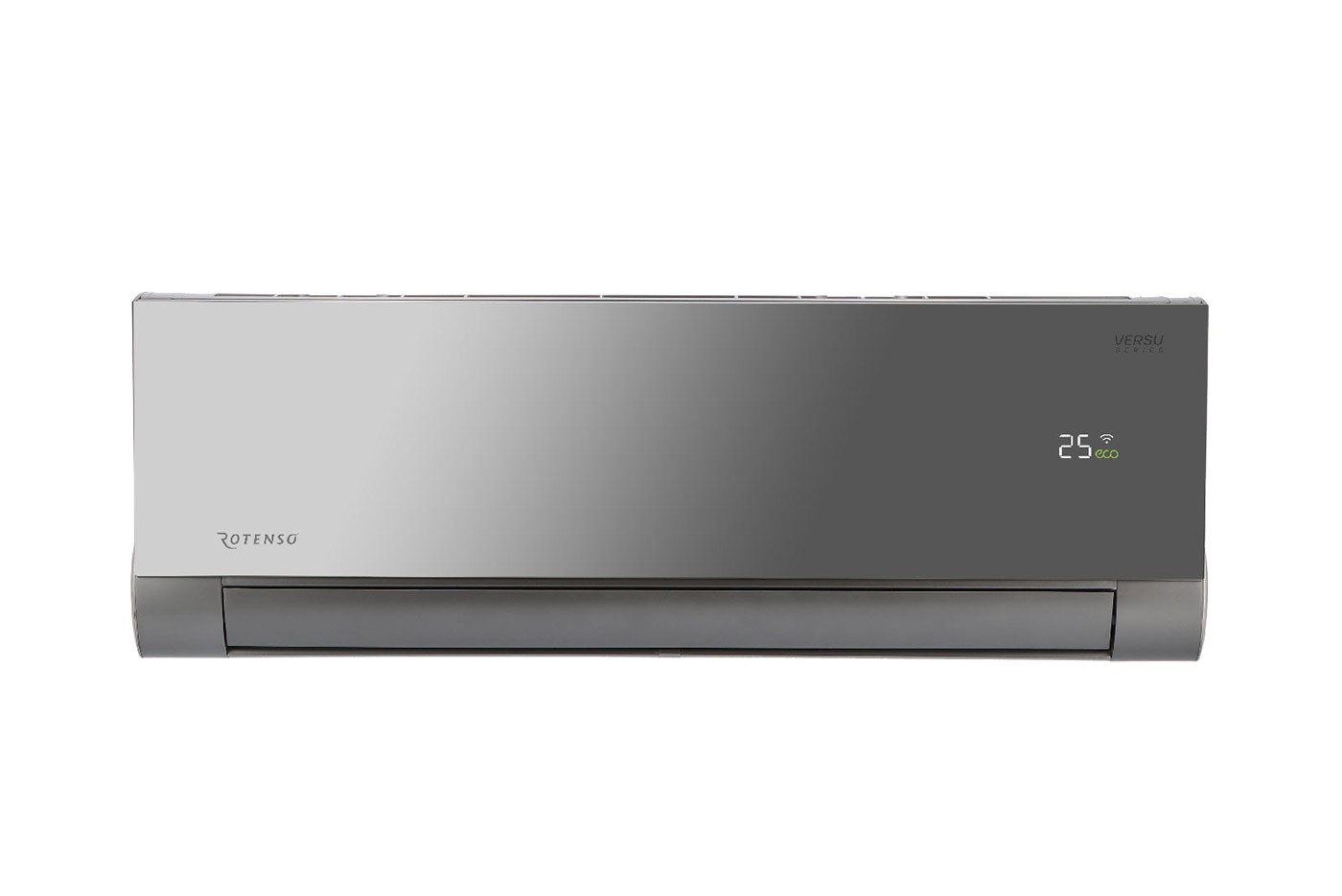 Rotenso Versu Mirror X to klimatyzator, któremu została przyznana wysoka klasa efektywności energetycznej (A+++ dla chłodzenia i A++ dla grzania). Producent osiągnął to, wykorzystując zaawansowane technologie i rozwiązania o wysokiej wydajności i niewielkim wpływie na środowisko naturalne. Warto również zwrócić uwagę na luksusowe wykończenie obudowy w grafitowym kolorze. Elegancji dodają mu niezwykle nowoczesny kształt, lustrzany przedni panel oraz stylowy wskaźnik trybu pracy z boku urządzenia.