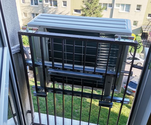 Montaż jednostki zewnętrznej na podkładach antyrezonansowych lub uchwycie (do 3 m wysokości)