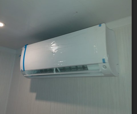 Pracownik Aero7 w trakcie montażu klimatyzacji